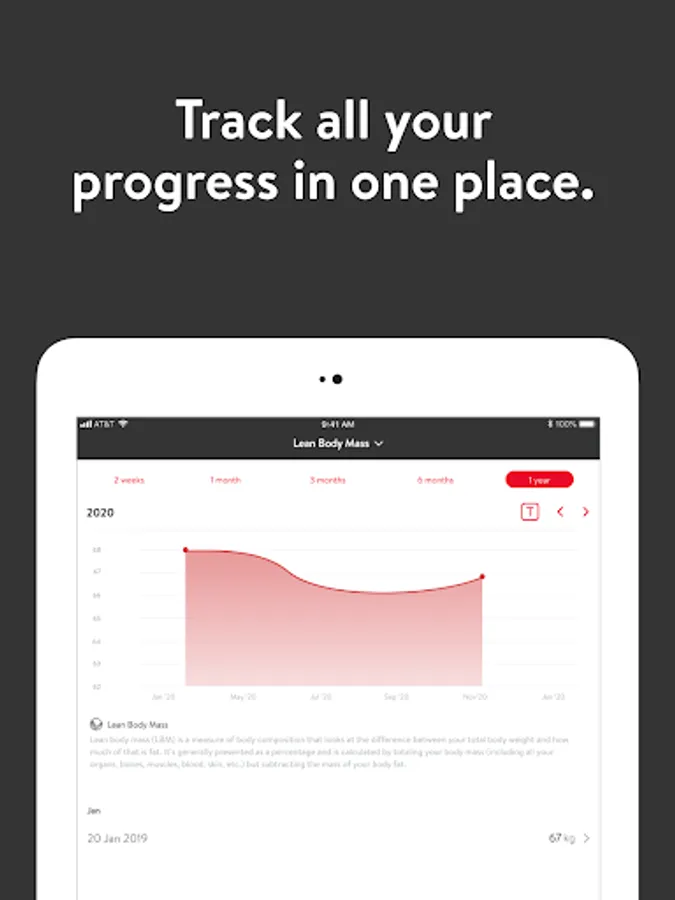 - Track body measurements and take progress photos