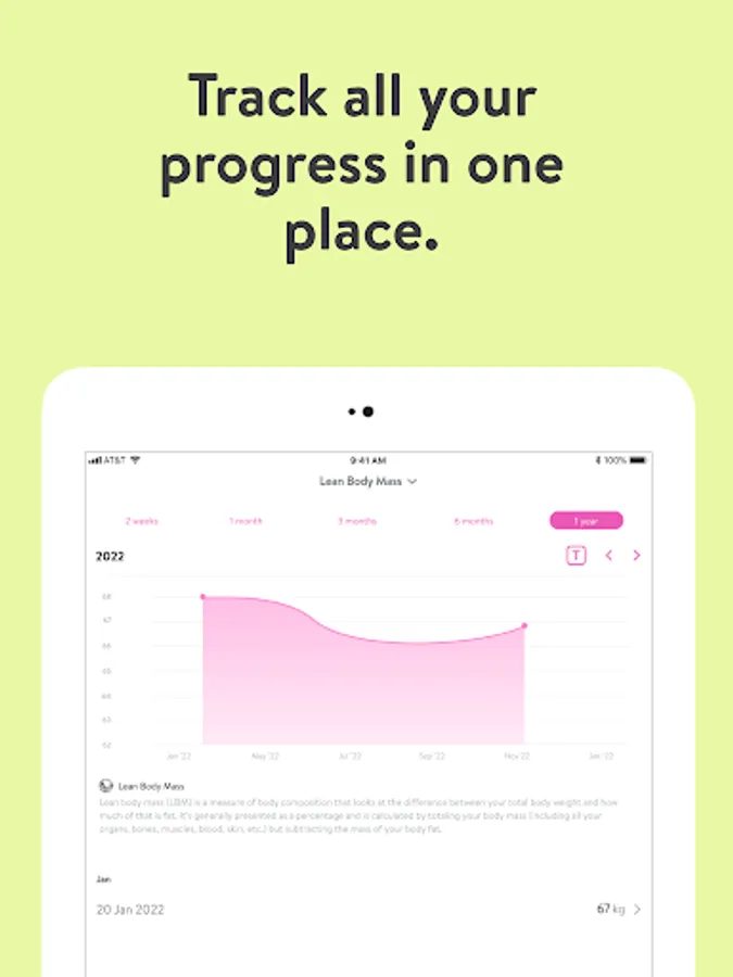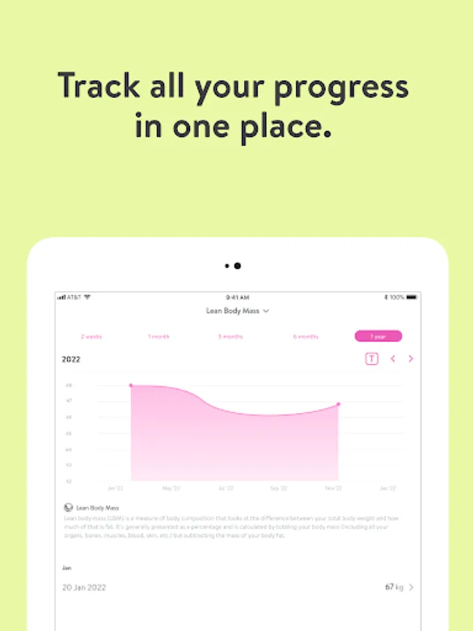 - Connect to other wearable devices and apps like the Apple Health App, Garmin, Fitbit, MyFitnessPal, and Withings devices to track workouts, sleep, nutrition, and body stats and composition