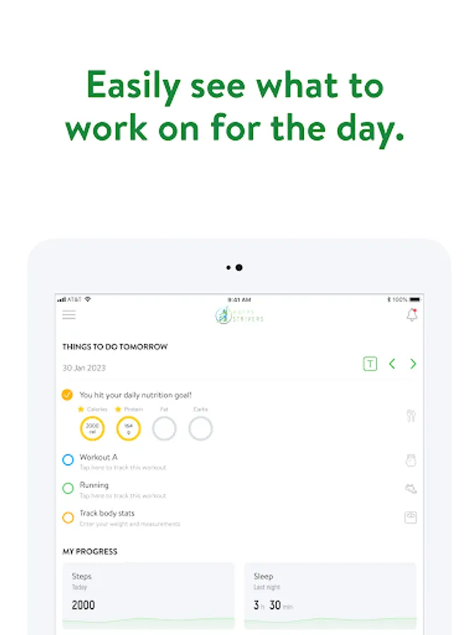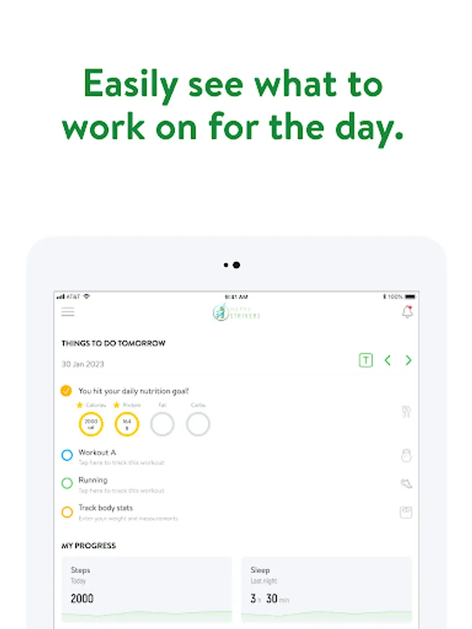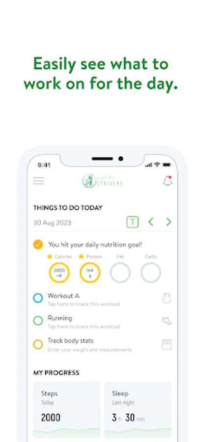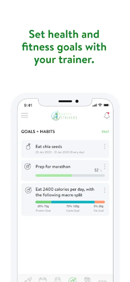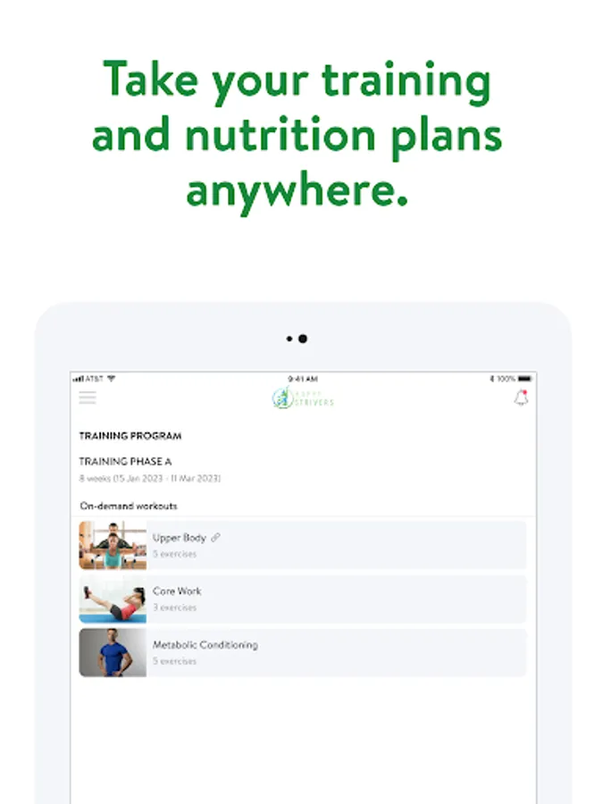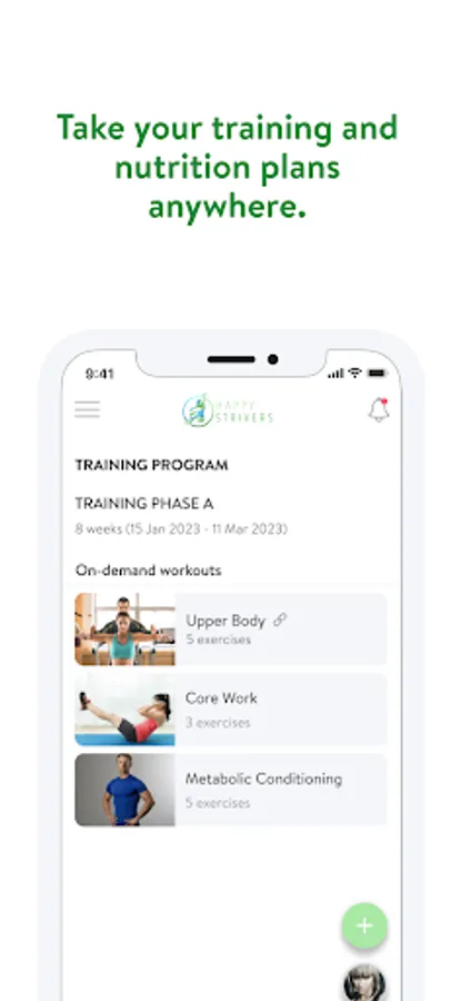 With the Happy Strivers App, you will have access to workout programs designed specifically to help you reach your fitness and health goals! You can follow & track your workouts, your nutrition, your lifestyle habits, measurements and results–all with the help of your coach.