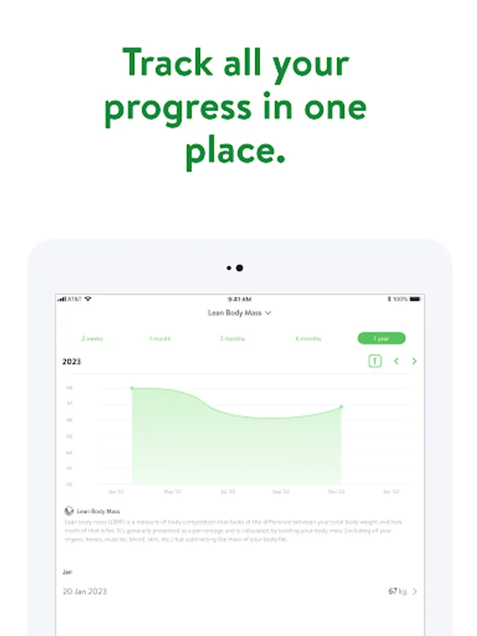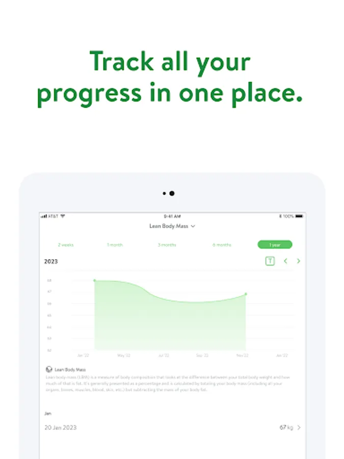 - Connect to other wearable devices and apps like the Apple Health App, Garmin, Fitbit, MyFitnessPal, and Withings devices to track workouts, sleep, nutrition, and body stats and composition