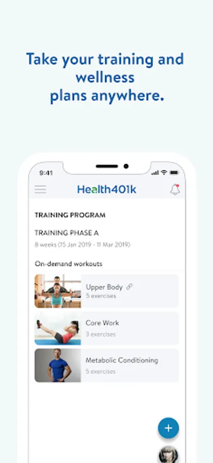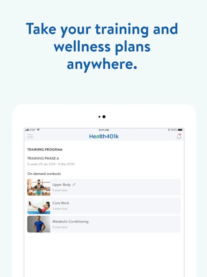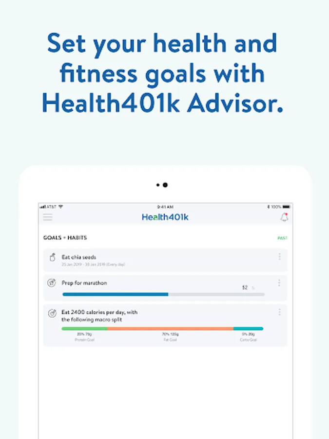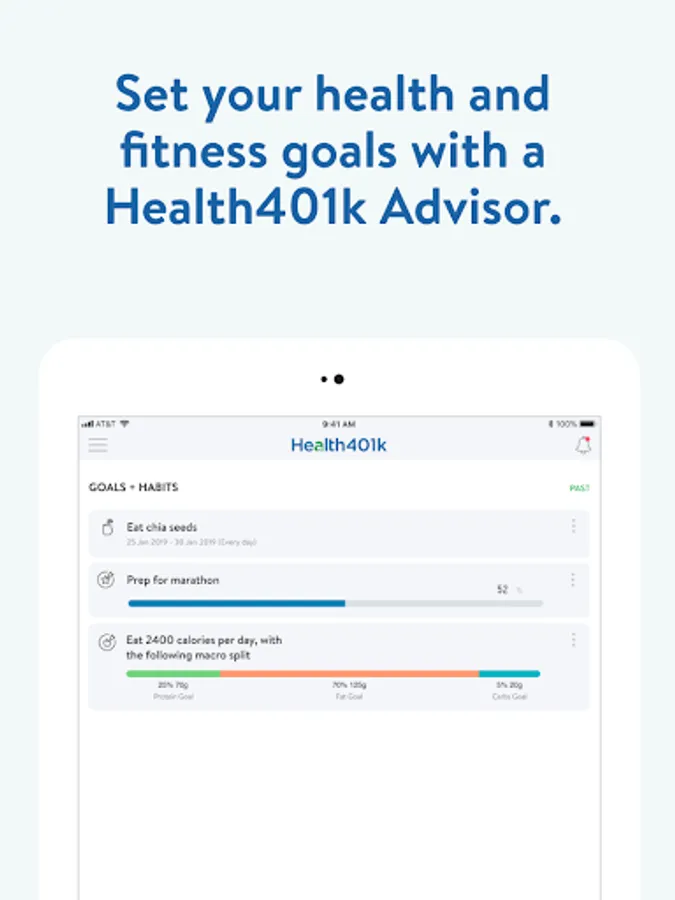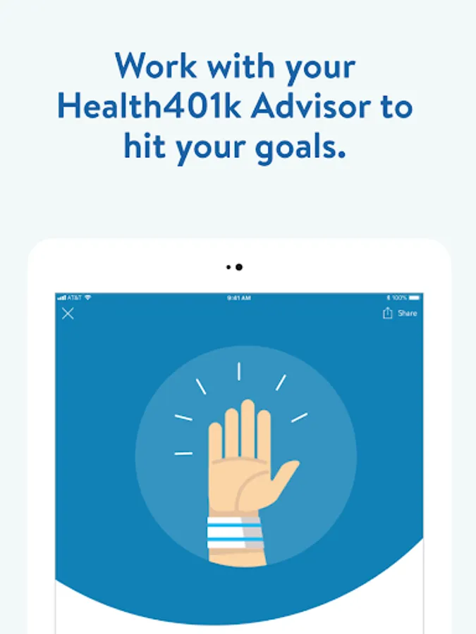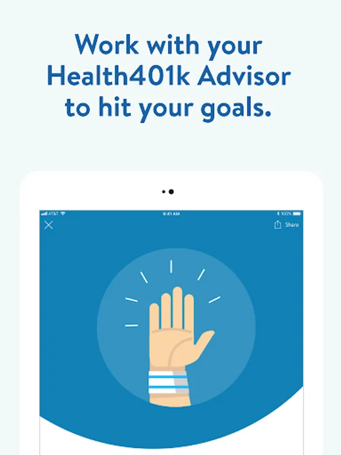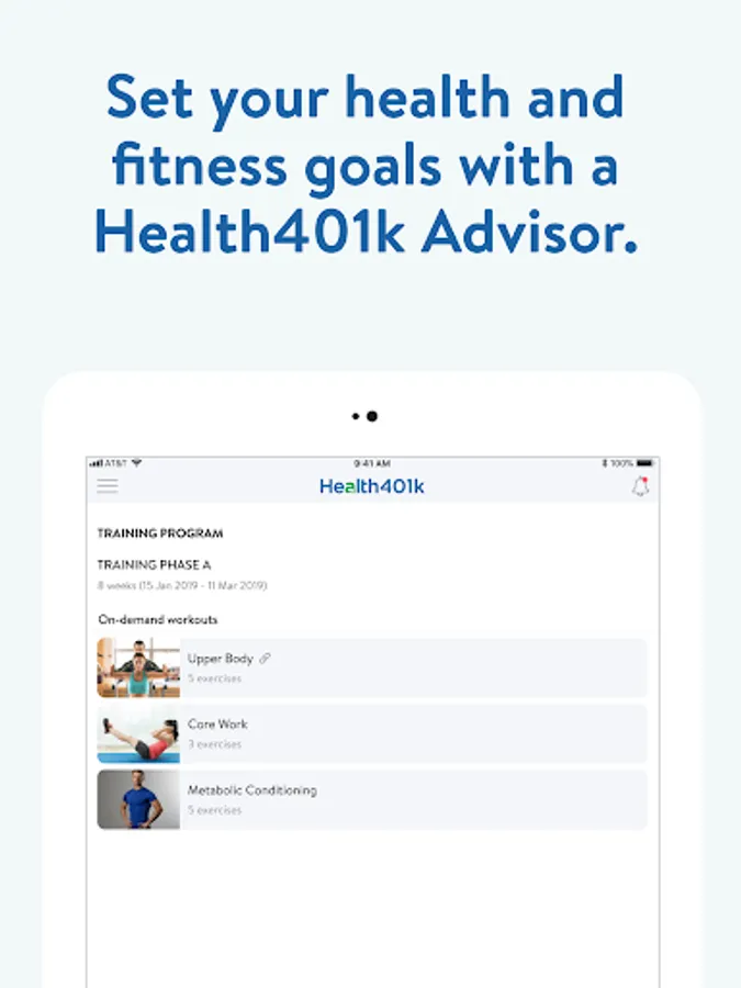 - Get regular updates and reminders through push notifications and direct message with a Health401k Adviser