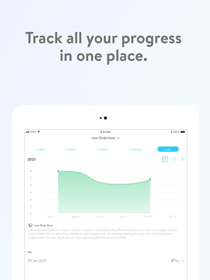 - Connect to other wearable devices and apps like the Apple Health App, Garmin, Fitbit, MyFitnessPal, and Withings devices to track workouts, sleep, nutrition, and body stats and composition