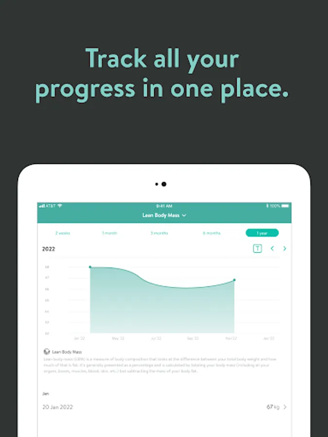 - Connect to other wearable devices and apps like the Apple Health App, Garmin, Fitbit, MyFitnessPal, and Withings devices to track workouts, sleep, nutrition, and body stats and composition