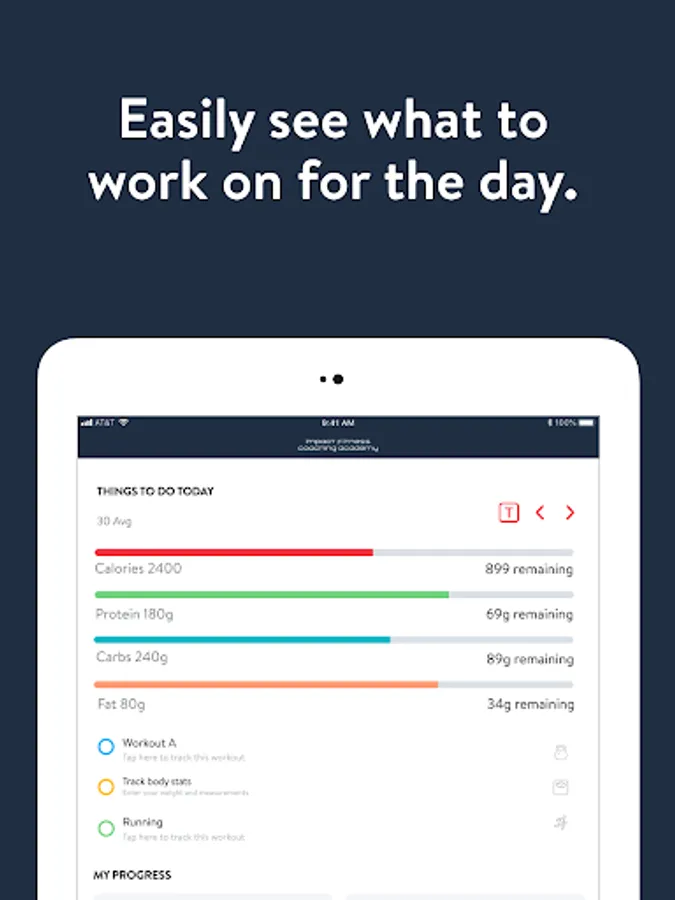 With the Impact Fitness Coach Academy App, you will have access to workout programs designed specifically to help you reach your fitness and health goals! You can follow & track your workouts, your nutrition, your lifestyle habits, measurements, and results–all with the help of your coach.