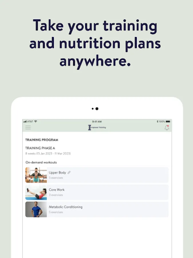 With the Impower Training App, you will have access to workout programs designed specifically to help you reach your wellness goals!