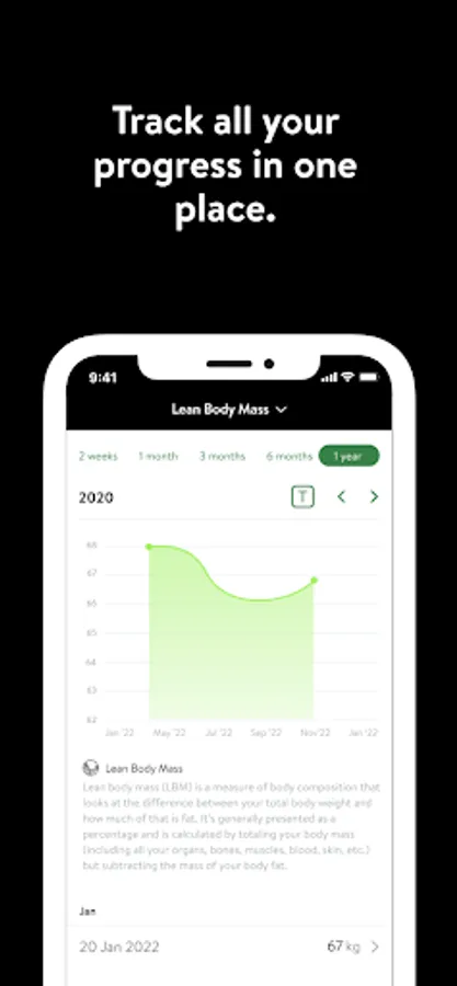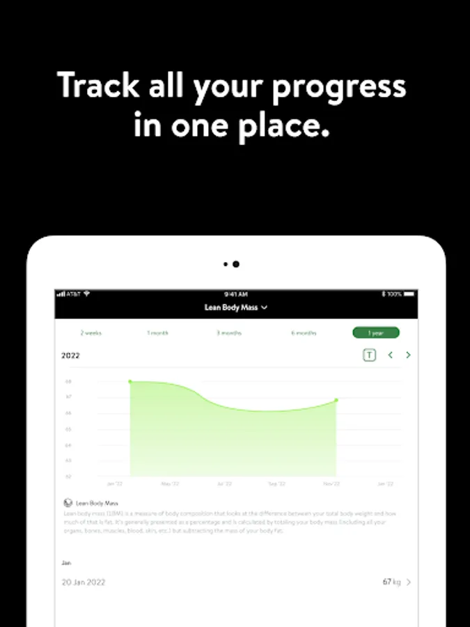- Track body measurements and take progress photos