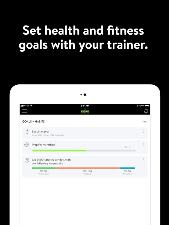 - Set health and fitness goals and track progress towards your goals