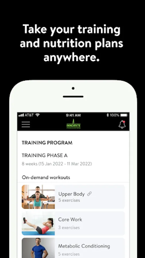 With the Innovate Fitness iCoach App, you will have access to workout programs designed specifically to help you reach your fitness and health goals! You can follow & track your workouts, your nutrition, your lifestyle habits, measurements and results–all with the help of your coach.