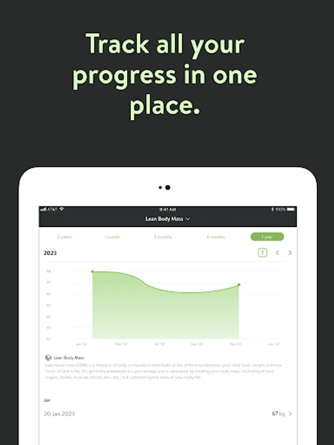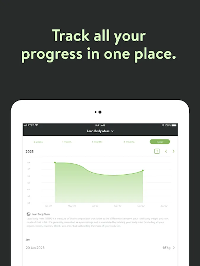 - Connect to other wearable devices and apps like the Apple Health App, Garmin, Fitbit, MyFitnessPal, and Withings devices to track workouts, sleep, nutrition, and body stats and composition