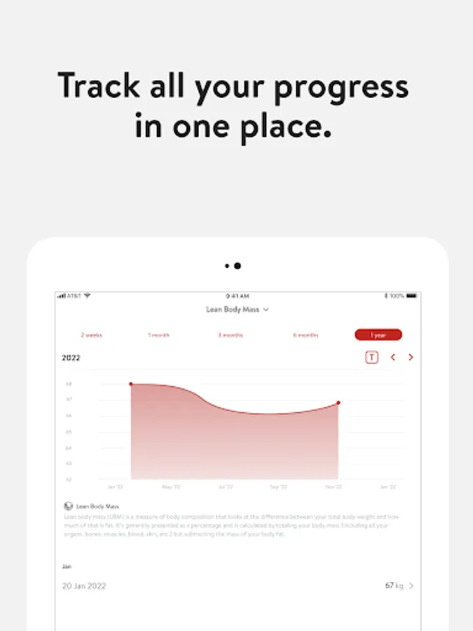 - Connect to other wearable devices and apps like the Apple Health App, Garmin, Fitbit, MyFitnessPal, and Withings devices to track workouts, sleep, nutrition, and body stats and composition