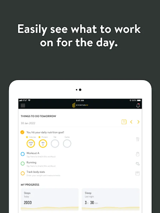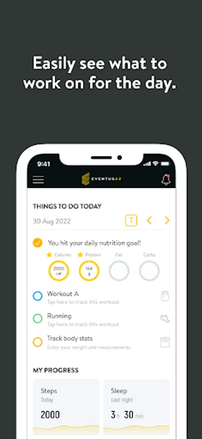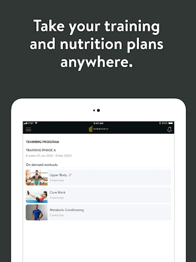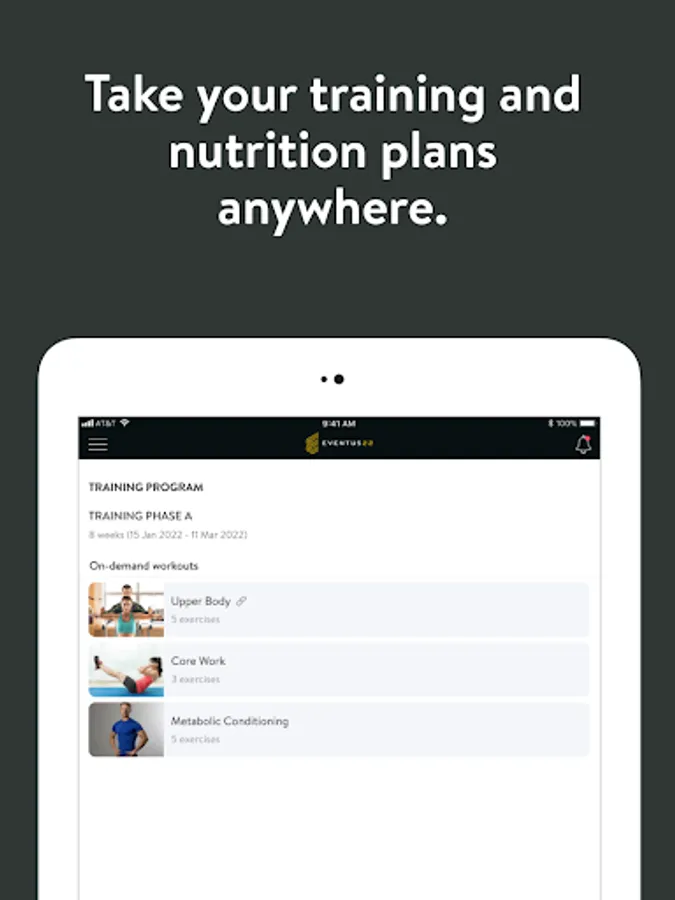 With the Eventus22 App, you will have access to workout programs designed specifically to help you reach your fitness and health goals! You can follow & track your workouts, your nutrition, your lifestyle habits, measurements and results–all with the help of your coach.