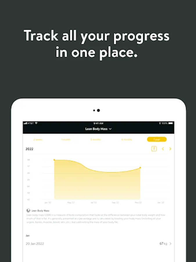 - Connect to other wearable devices and apps like the Apple Health App, Garmin, Fitbit, MyFitnessPal, and Withings devices to track workouts, sleep, nutrition, and body stats and composition