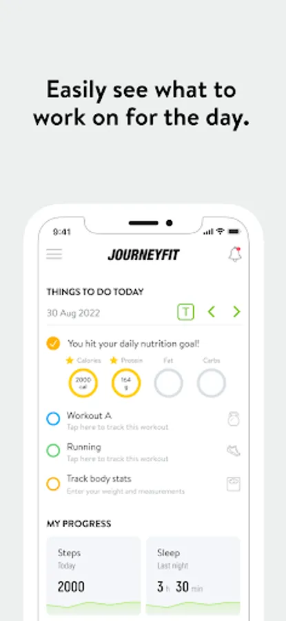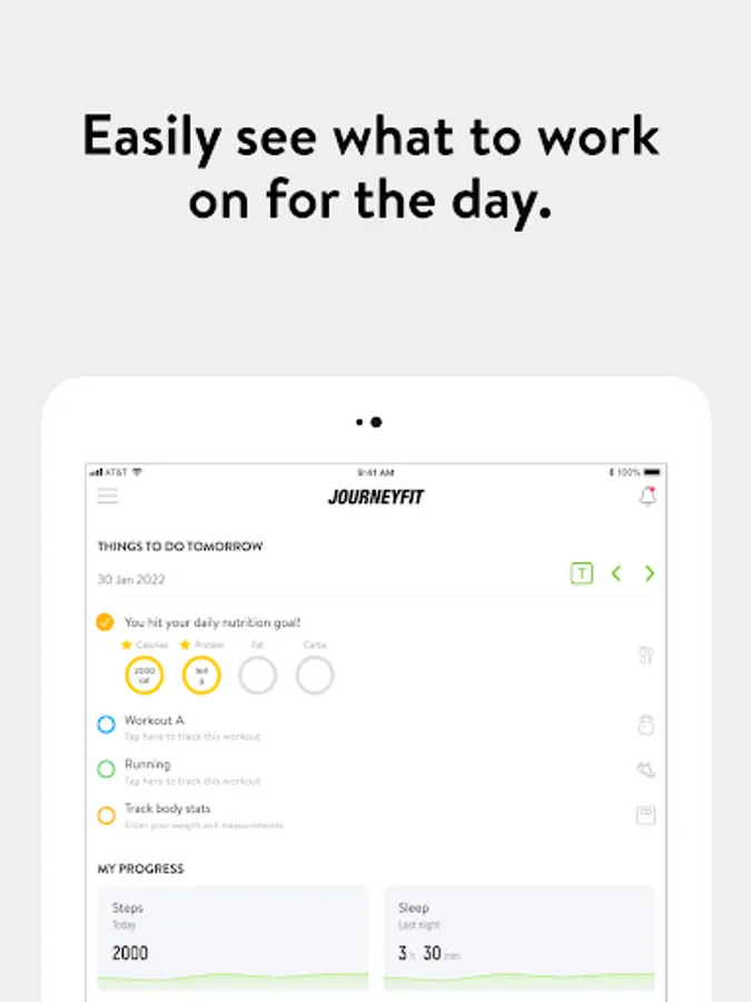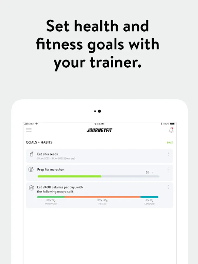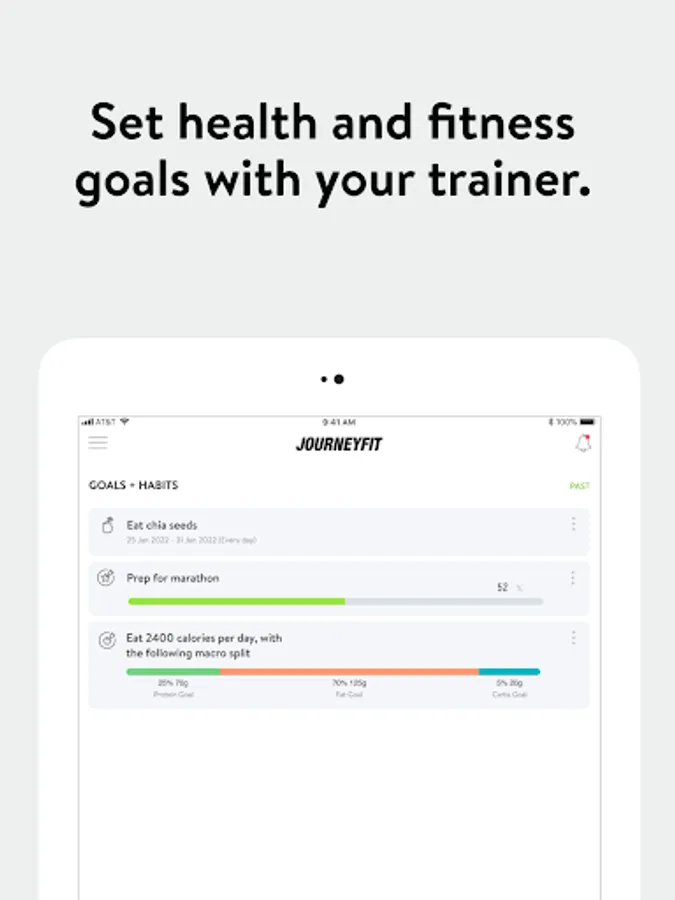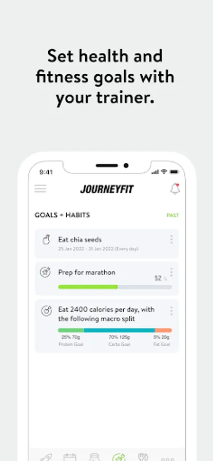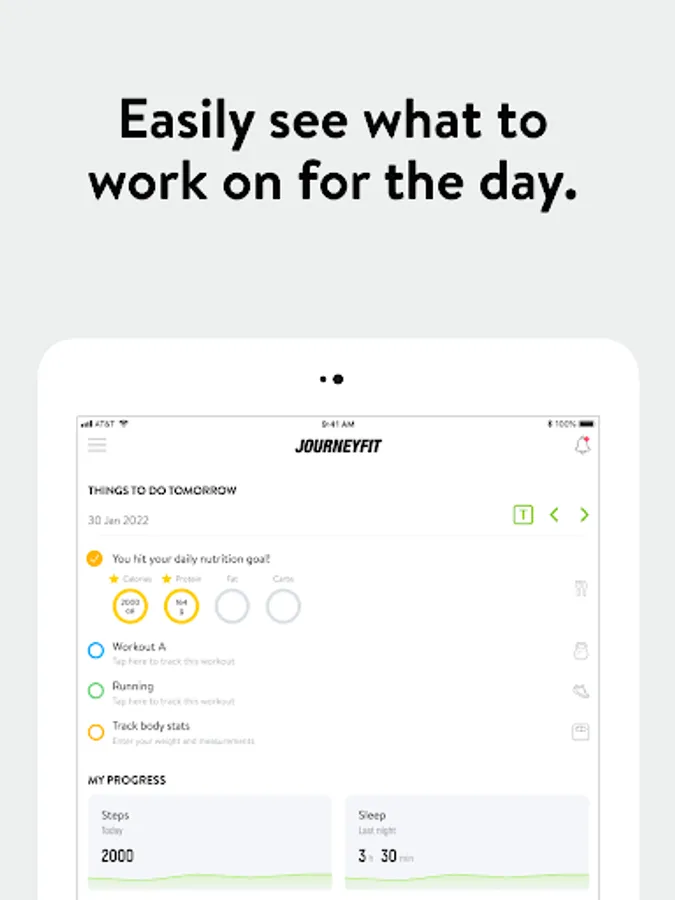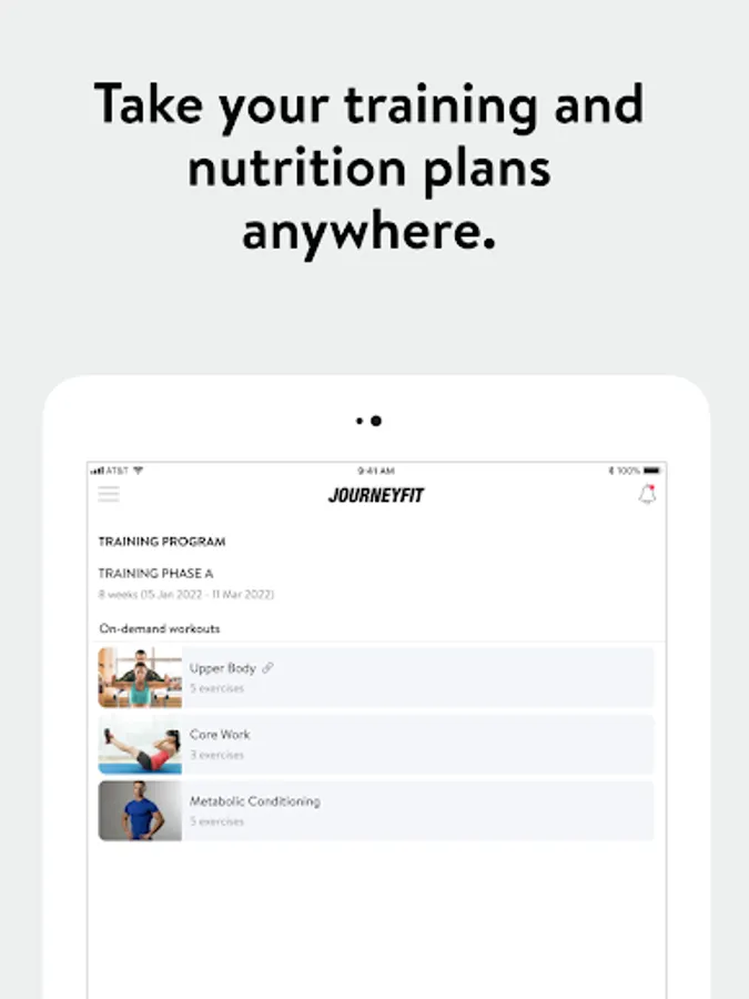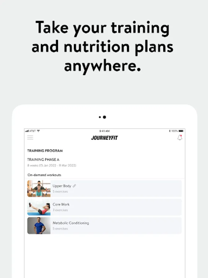 With the JOURNEYFIT Coaching App, you will have access to workout programs designed specifically to help you reach your fitness and health goals! You can follow & track your workouts, your nutrition, your lifestyle habits, measurements and results–all with the help of your coach.