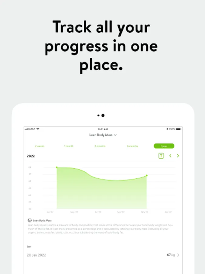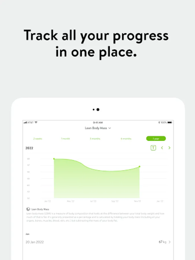 - Connect to other wearable devices and apps like the Apple Health App, Garmin, Fitbit, MyFitnessPal, and Withings devices to track workouts, sleep, nutrition, and body stats and composition