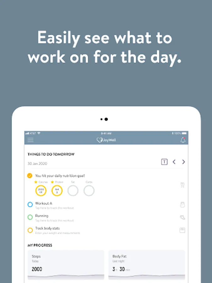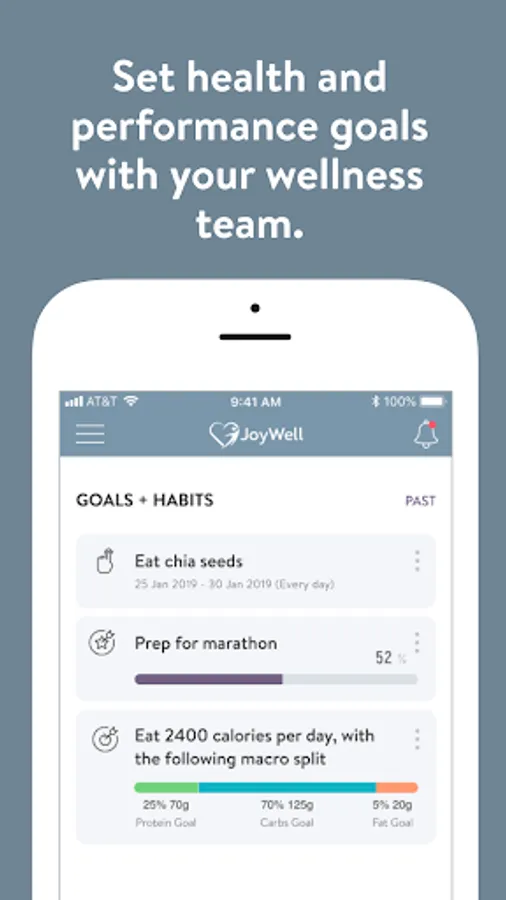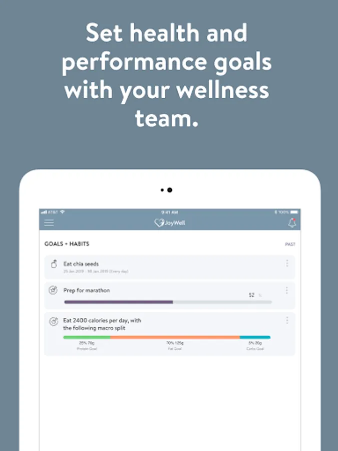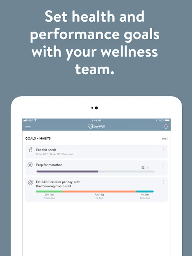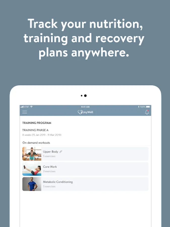 With the JoyWell App, JoyWell members can access custom videos, tips, education, and professional advice on functional health and musculoskeletal wellness topics from your wellness team. Additional features include: