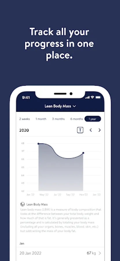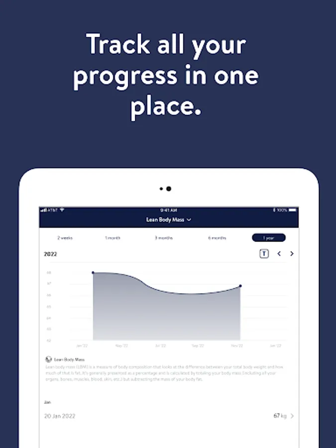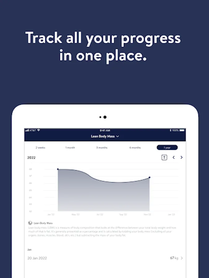 - Track body measurements and take progress photos
