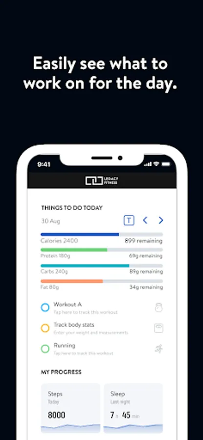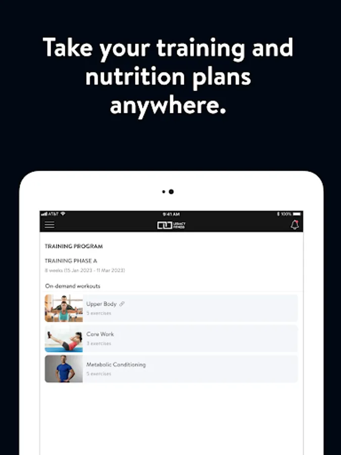 With the Legacy Fitness Training App, you will have access to your personal coach, and personalized programs. These are designed specifically to help you reach your fitness goals. You can follow & track your workouts, your nutrition, your lifestyle habits, measurements and results–all with the help of your coach.