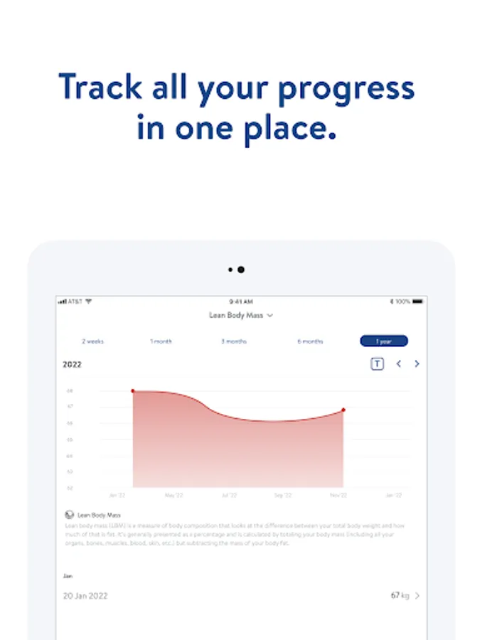 - Connect to other wearable devices and apps like the Apple Health App, Garmin, Fitbit, MyFitnessPal, and Withings devices to track workouts, sleep, nutrition, and body stats and composition