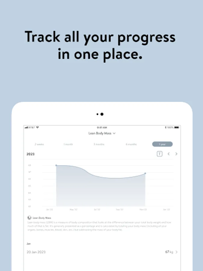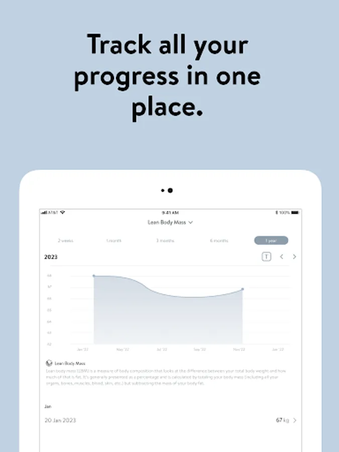 - Connect to other wearable devices and apps like the Apple Health App, Garmin, Fitbit, MyFitnessPal, and Withings devices to track workouts, sleep, nutrition, and body stats and composition