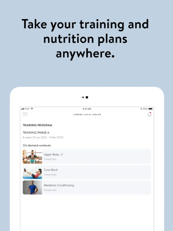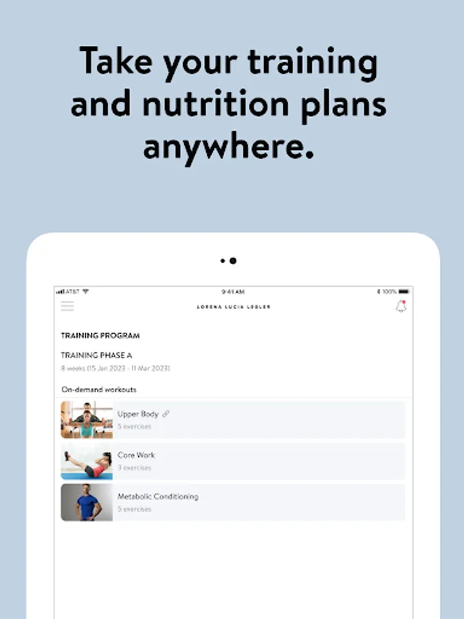 With the Lorena Lucia Legler Coaching App, you will have access to various workout programs designed specifically to help you reach your fitness and health goals! You can follow & track your workouts, your nutrition, your lifestyle habits, measurements and results in one place.