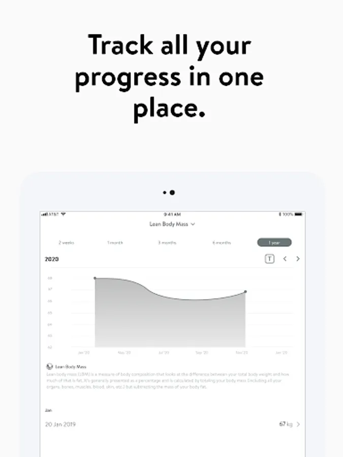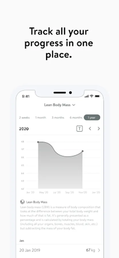 - Track body measurements and take progress photos