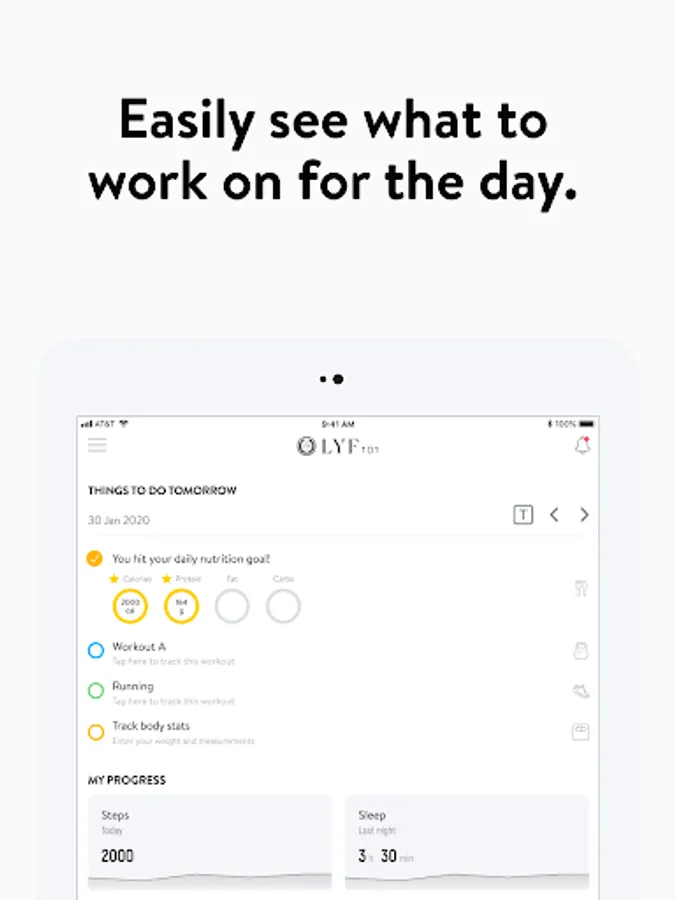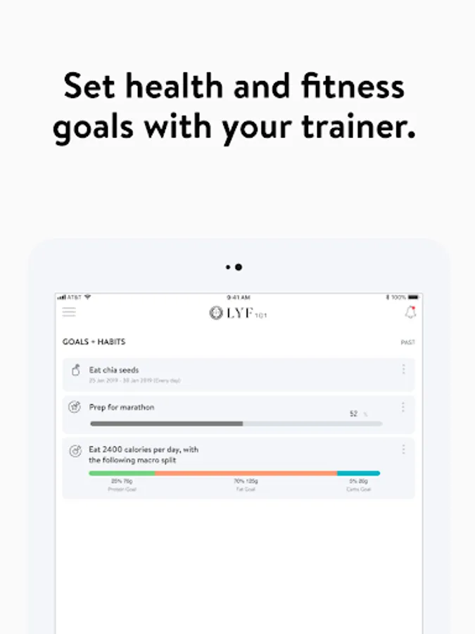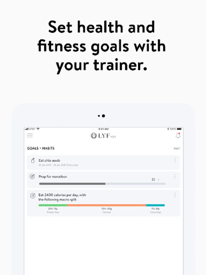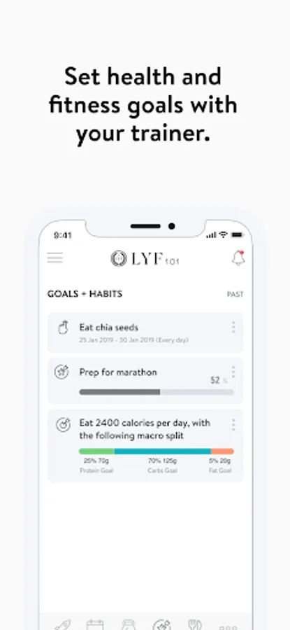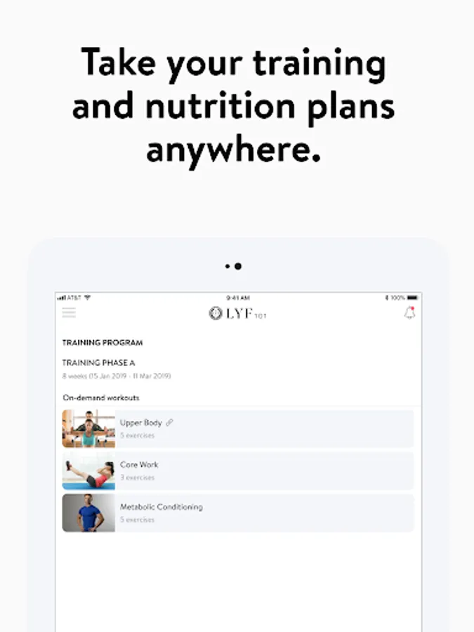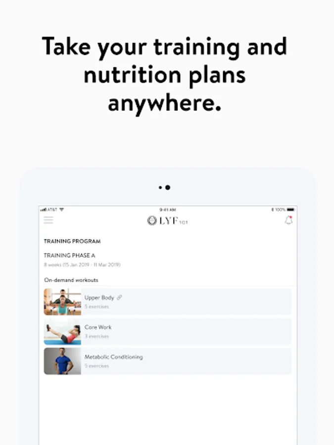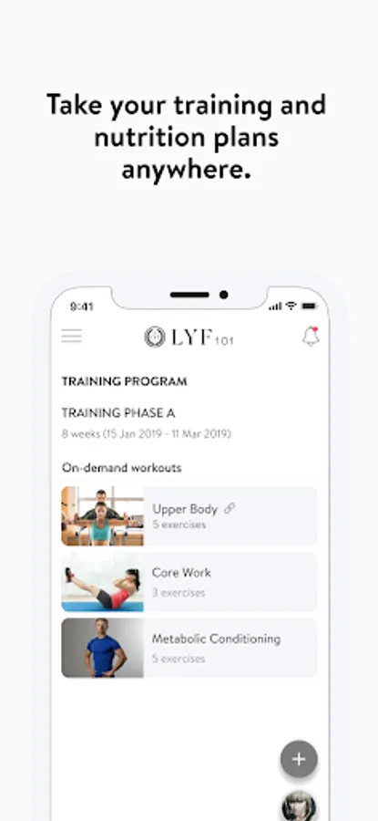 With the LYF101 App, you will have access to workout programs designed specifically to help you reach your fitness and health goals! You can follow & track your workouts, your nutrition, your lifestyle habits, measurements and results–all with the help of your coach.