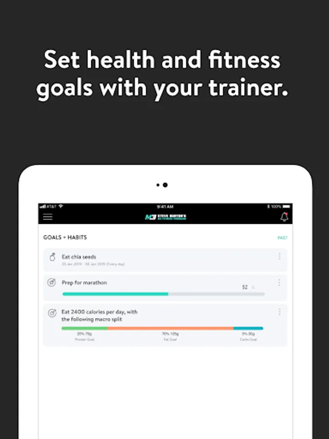 - Set health and fitness goals and track progress towards your goals