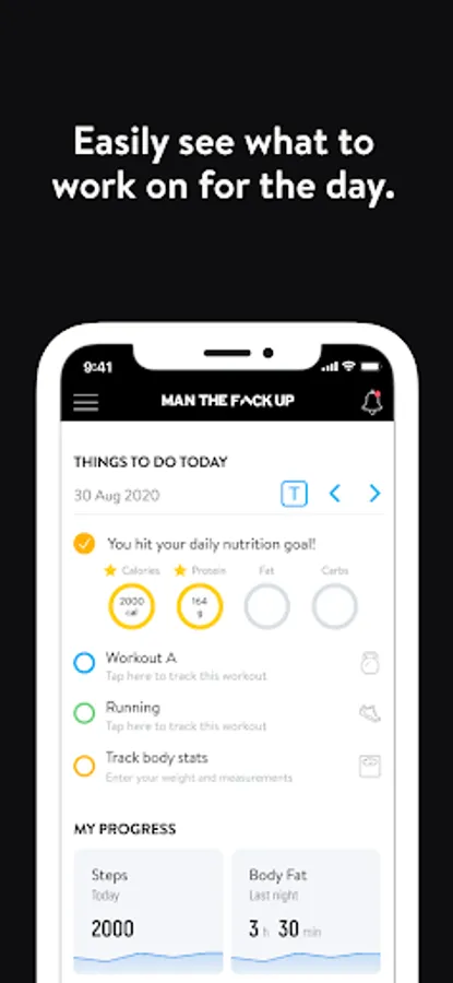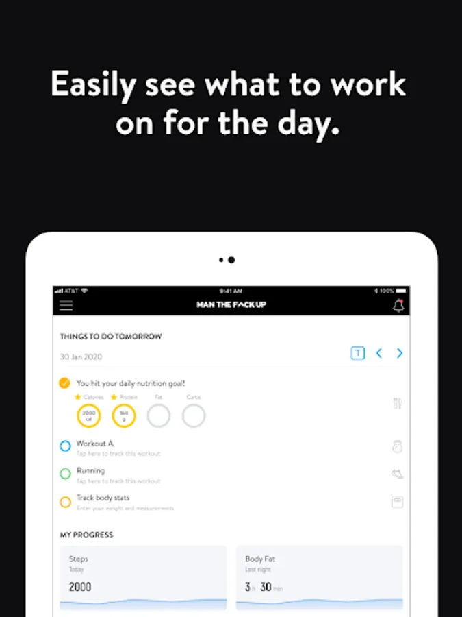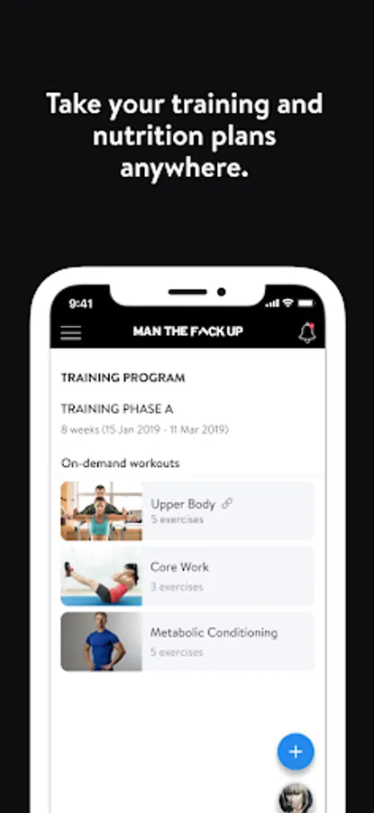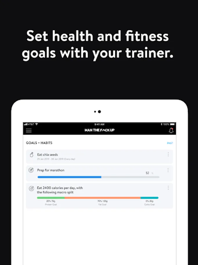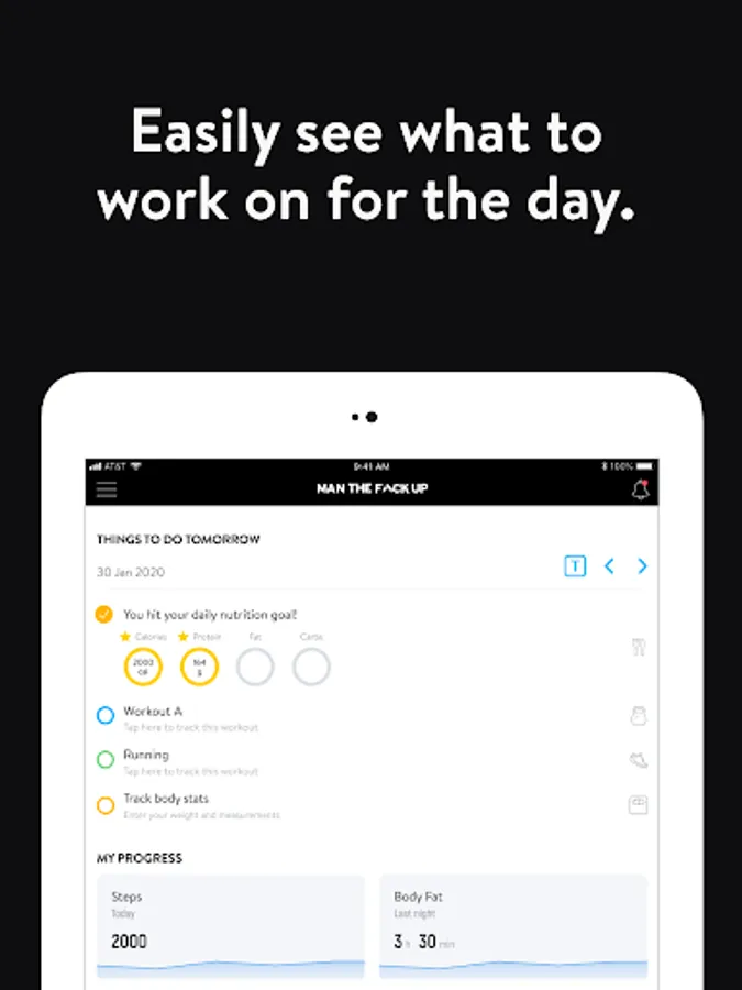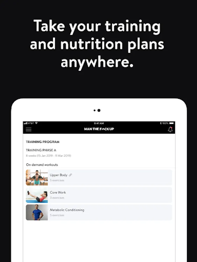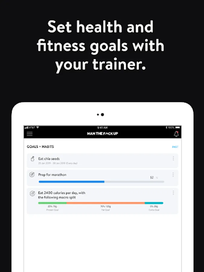 The ManTheFUp App connects you and your coach in real time to ensure the best results possible on your transformation journey. All coach-client communications, check ins, workout changes, nutrition changes and progress photos will be hosted here in a clean easy to access format.