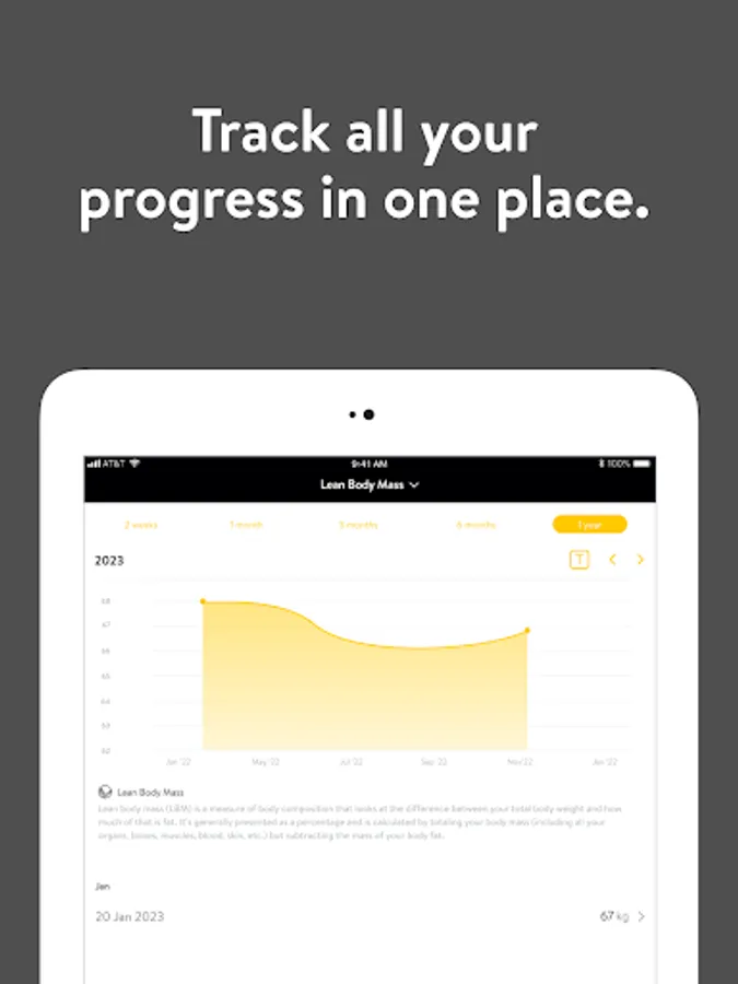 - Connect to other wearable devices and apps like the Apple Health App, Garmin, Fitbit, MyFitnessPal, and Withings devices to track workouts, sleep, nutrition, and body stats and composition