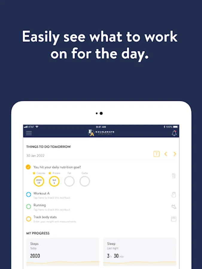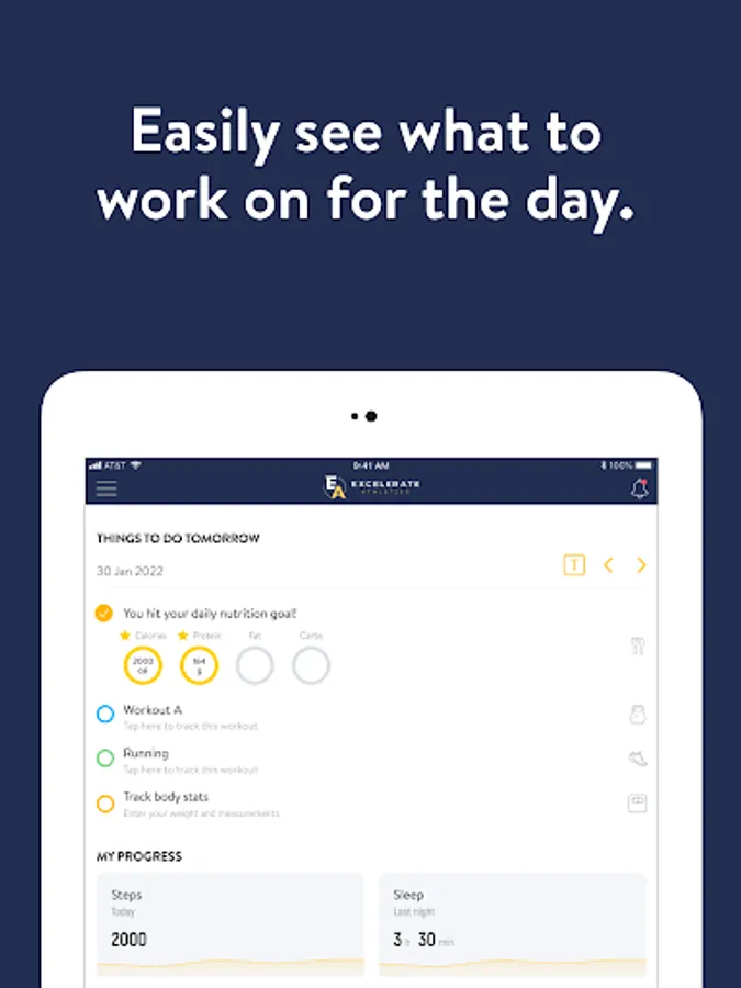 With the Excelerate Athletics App, you will have access to your customized workout program designed specifically to help you reach your fitness and health goals! You can follow & track your workouts, your nutrition, your lifestyle habits, measurements and results. Pairing this with our 1:1 coaching, your coach will be able to see how you are progressing and make real time adjustments to your protocols to ensure you are seeing the changes you desire!