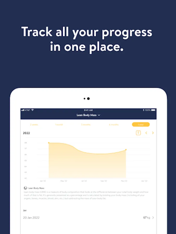 - Connect to other wearable devices and apps like the Apple Health App, Garmin, Fitbit, MyFitnessPal, and Withings devices to track workouts, sleep, nutrition, and body stats and composition