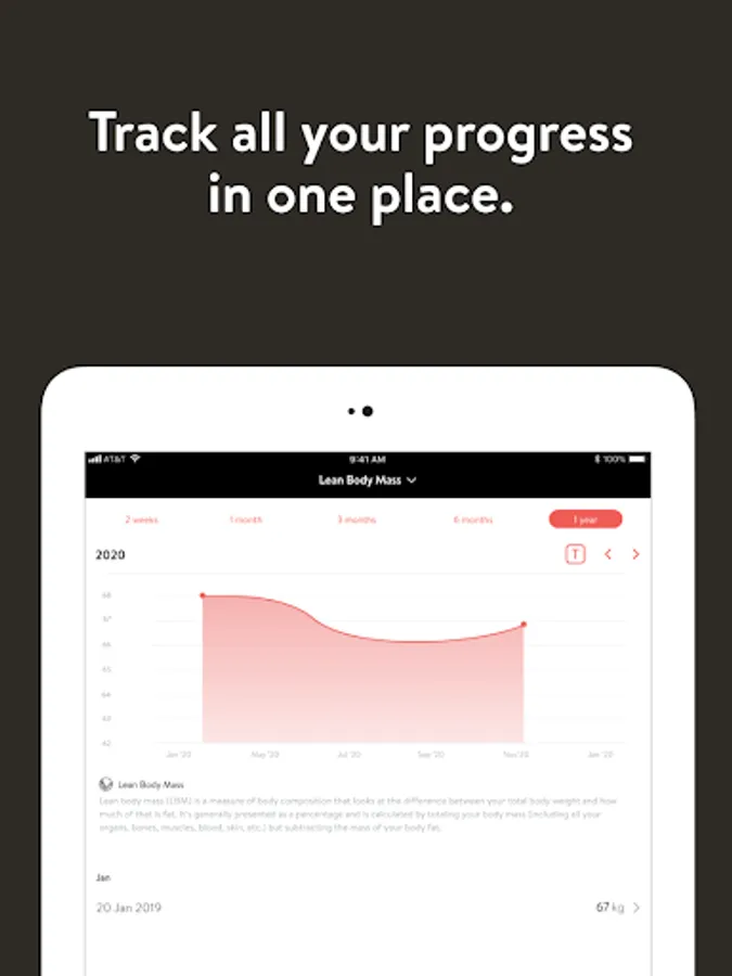 - Connect to wearable devices like Apple Watch (synced to Health app), Fitbit and Withings to sync body stats instantly