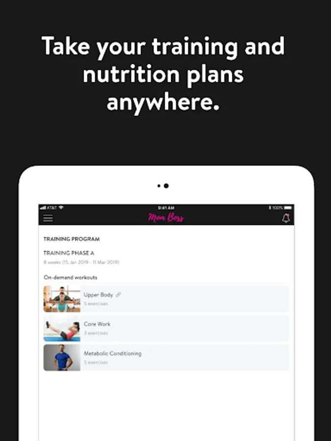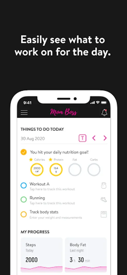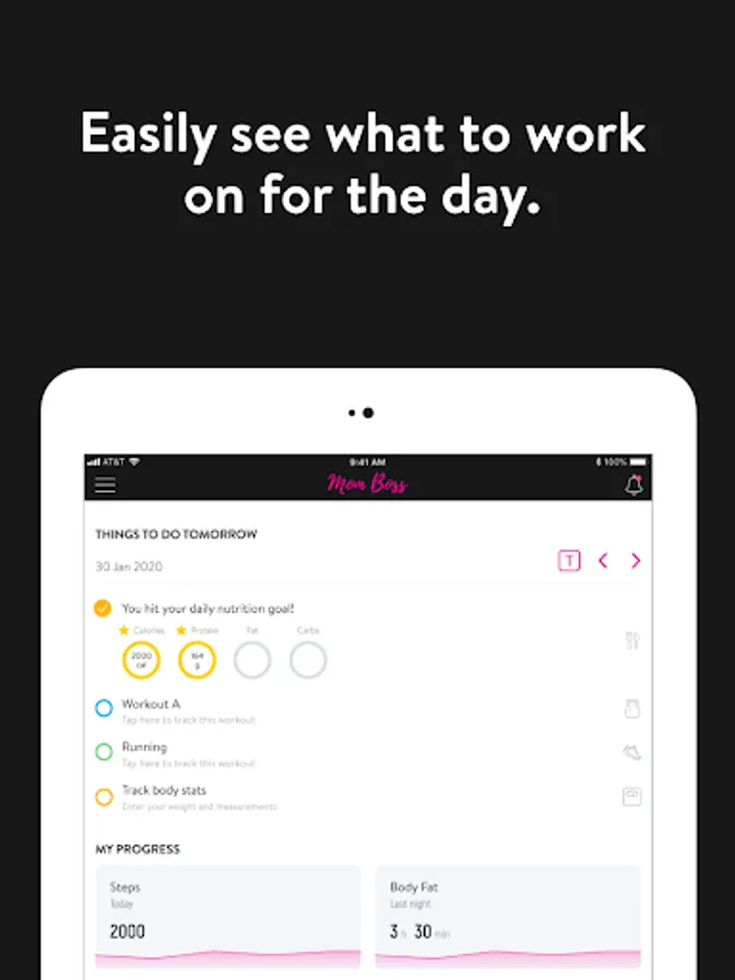 With the Mom Boss Workout App, you can start tracking your workouts and meals, measuring results, and achieving your fitness goals, all with the help of your personal trainer.