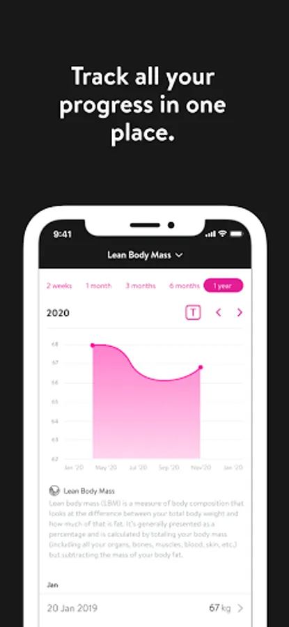 - Track body measurements and take progress photos