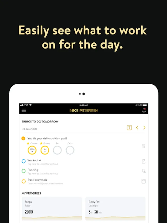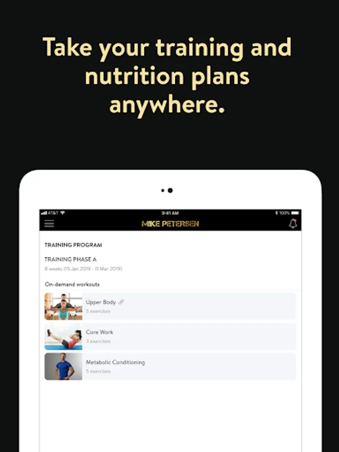 - Access Your Training Plan and track your numbers (sets, reps, weight, progress)