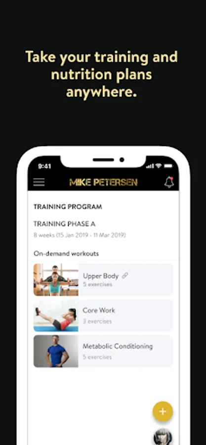 - Get push notification reminders for scheduled workouts, on-going education and support