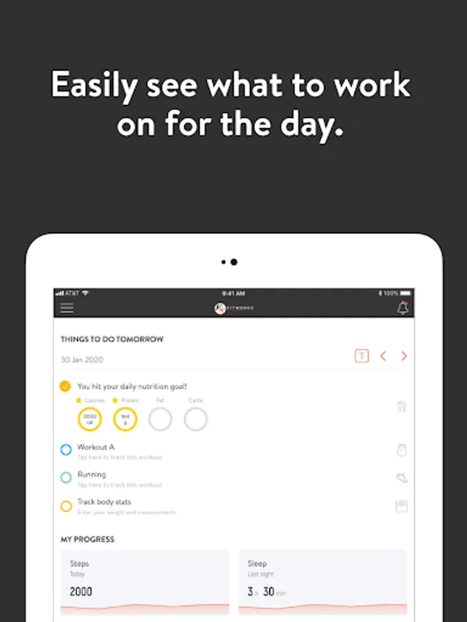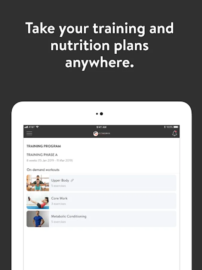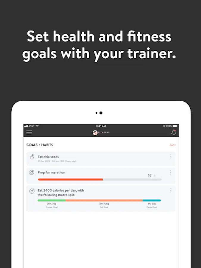 With the FITWORKS App, you can start tracking your workouts and meals, measuring results, and achieving your fitness goals, all with the help of your personal trainer.