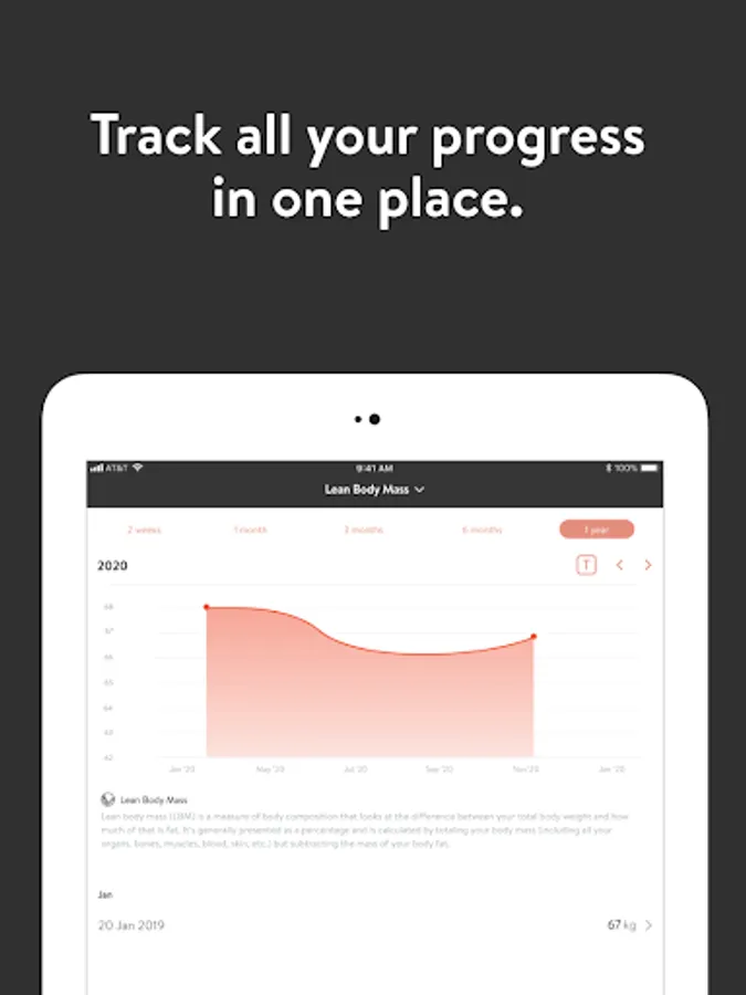 - Connect to wearable devices like Apple Watch (synced to Health app), Fitbit and Withings to sync body stats instantly