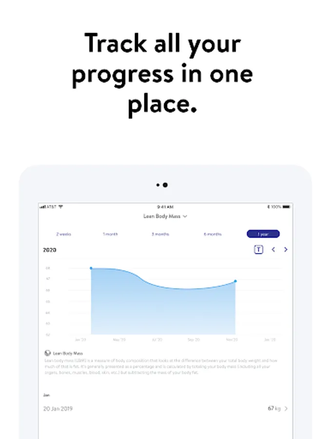 - Connect to wearable devices like Apple Watch (synced to Health app), Fitbit and Withings to sync body stats instantly