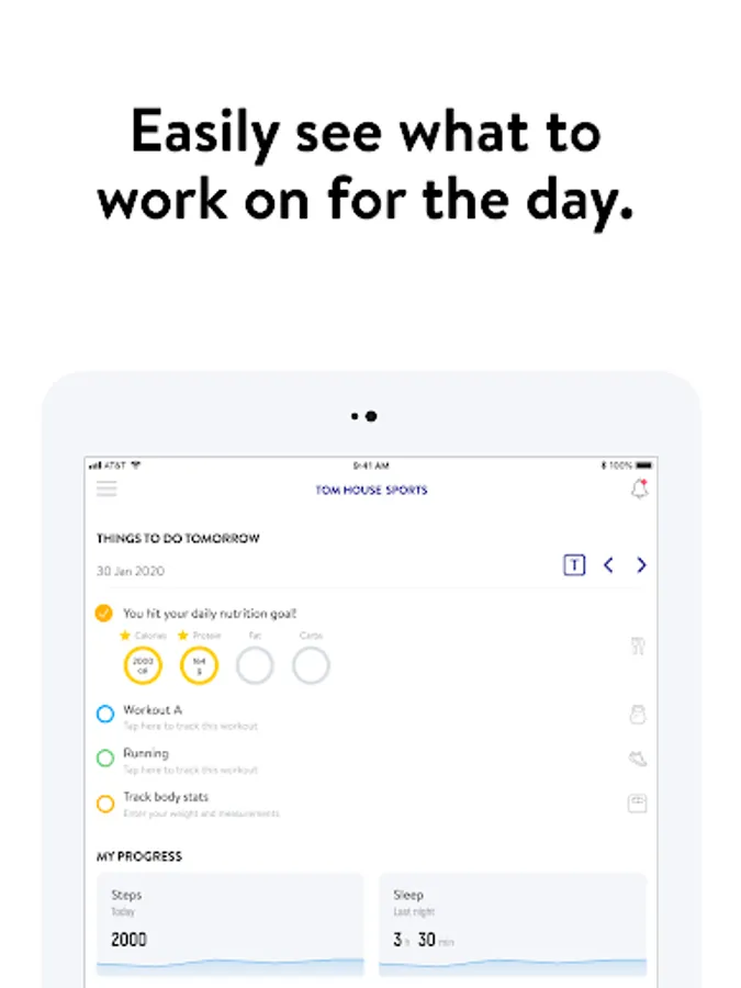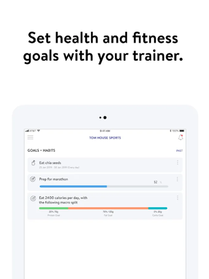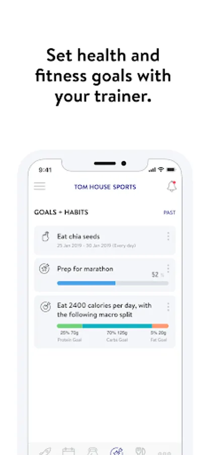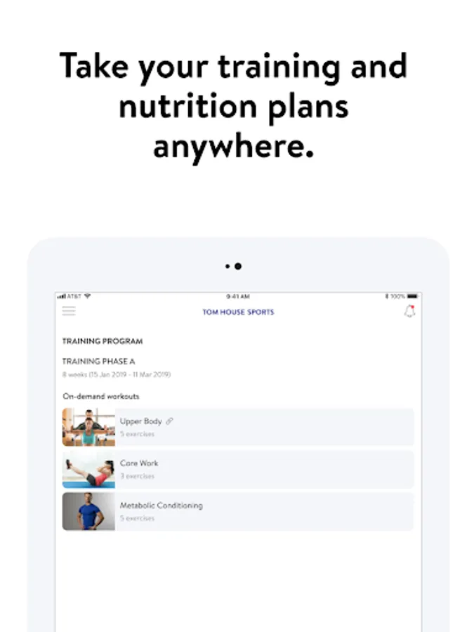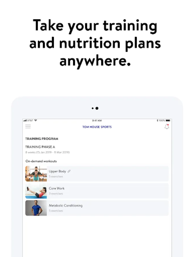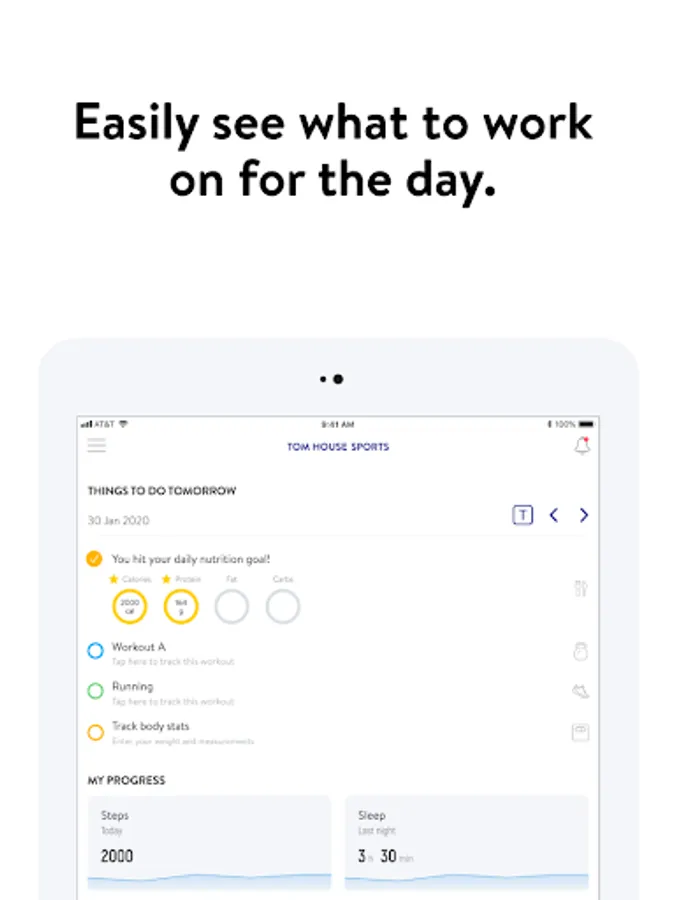 With the Tom House Sports Fitness App, you can start tracking your workouts and meals, measuring results, and achieving your fitness goals, all with the help of your personal trainer.
