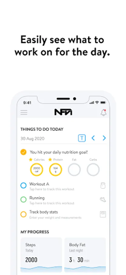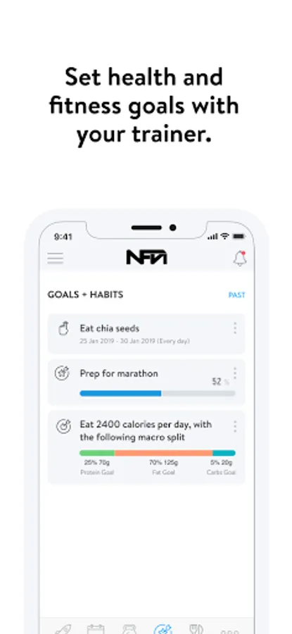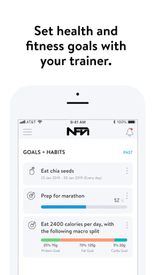 With the NFN App, you can start tracking your workouts and meals, measuring results, and achieving your fitness goals, all with the help of your personal trainer.