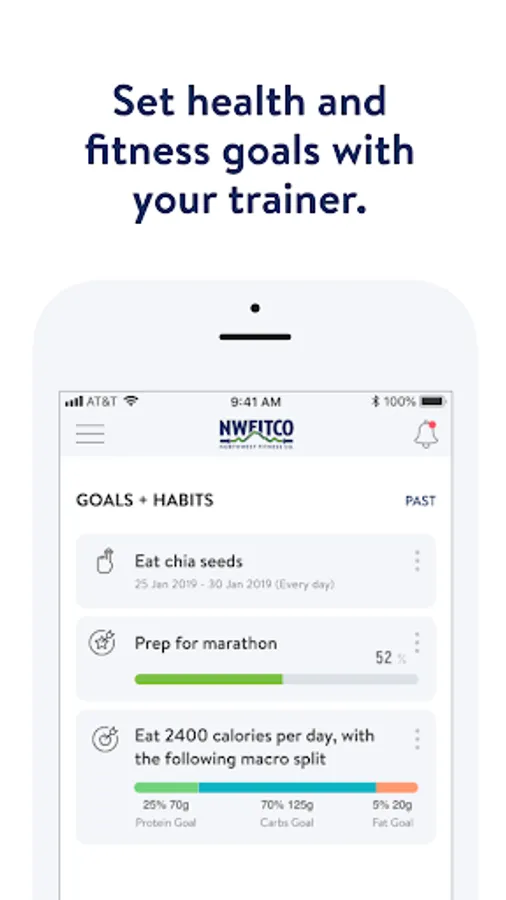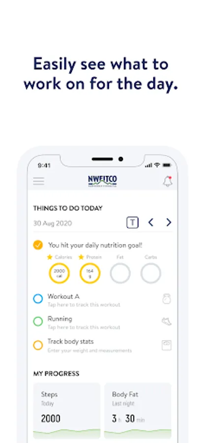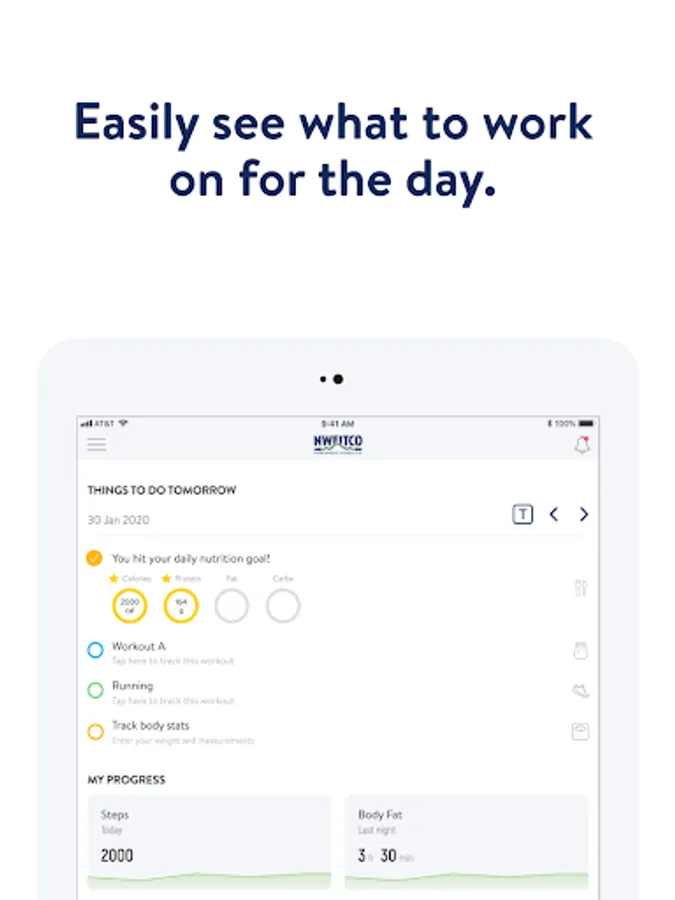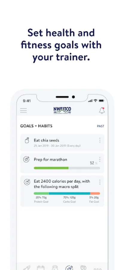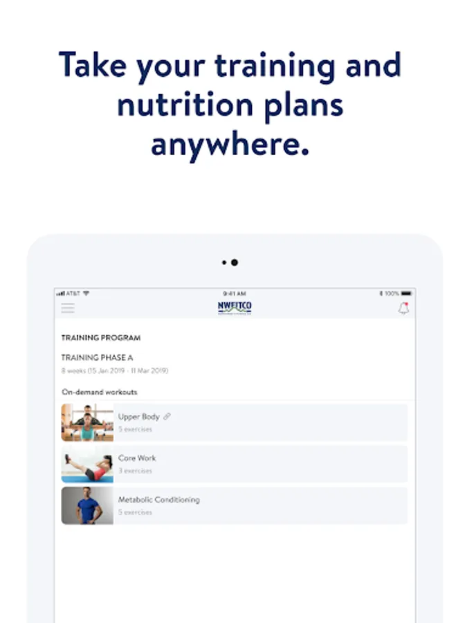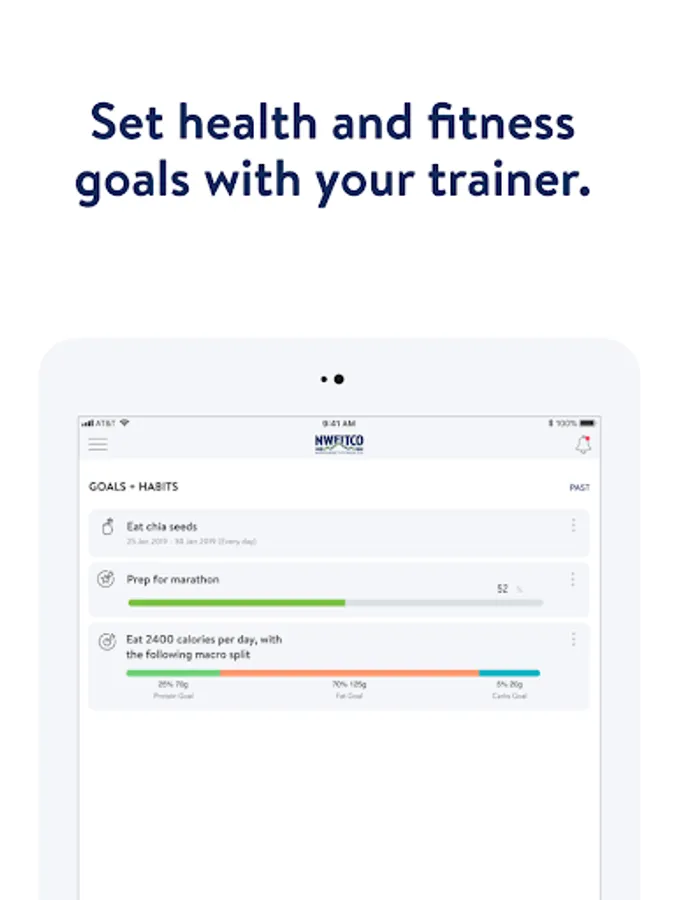 With the NWFITCO App, you can start tracking your workouts and meals, measuring results, and achieving your fitness goals, all with the help of your personal trainer.