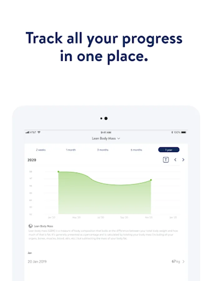 - Connect to wearable devices like Apple Watch (synced to Health app), Fitbit and Withings to sync body stats instantly