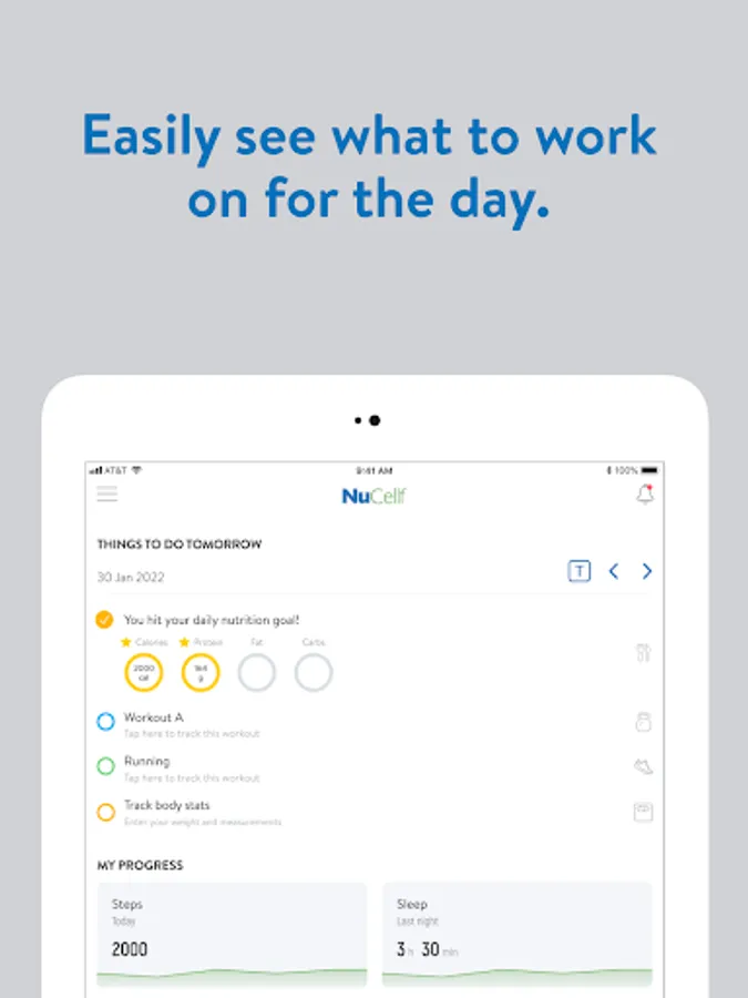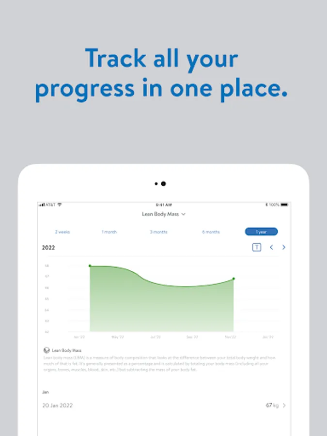 - Connect your Apple Watch or other wearables to track workouts, steps, sleep, nutrition, and body stats and composition