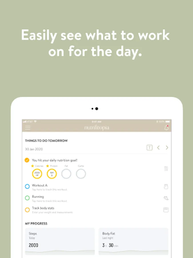 With the nutrifitopia App, you can start tracking your workouts and meals, measuring results, and achieving your fitness goals, all with the help of Sama Ghorbani, your personal trainer.