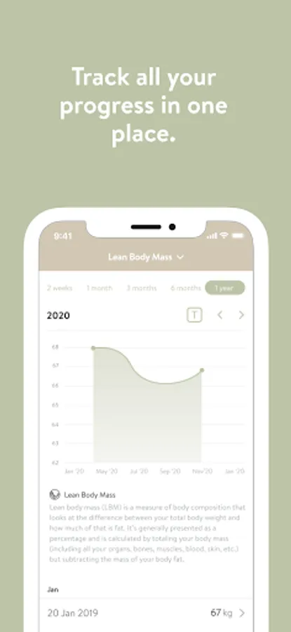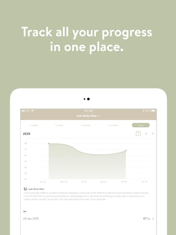- Track body measurements and take progress photos