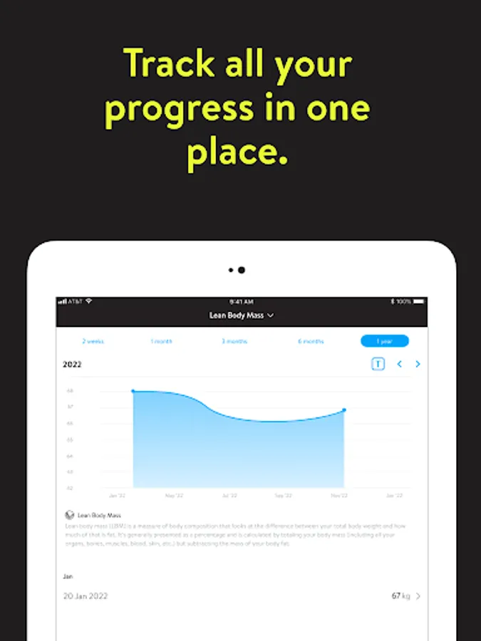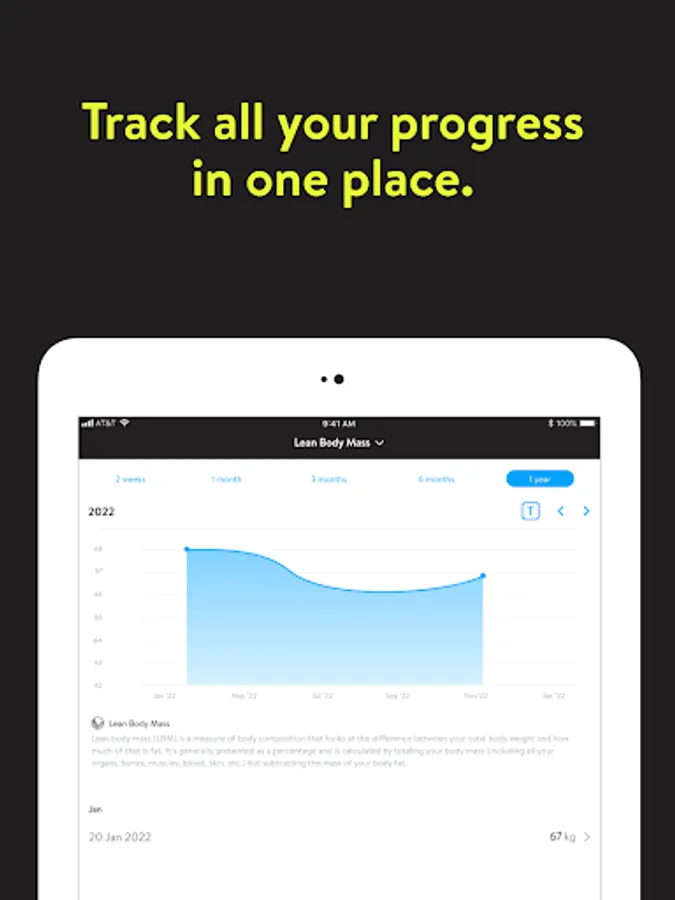 - Connect to other wearable devices and apps like the Apple Health App, Garmin, Fitbit, MyFitnessPal, and Withings devices to track workouts, sleep, nutrition, and body stats and composition