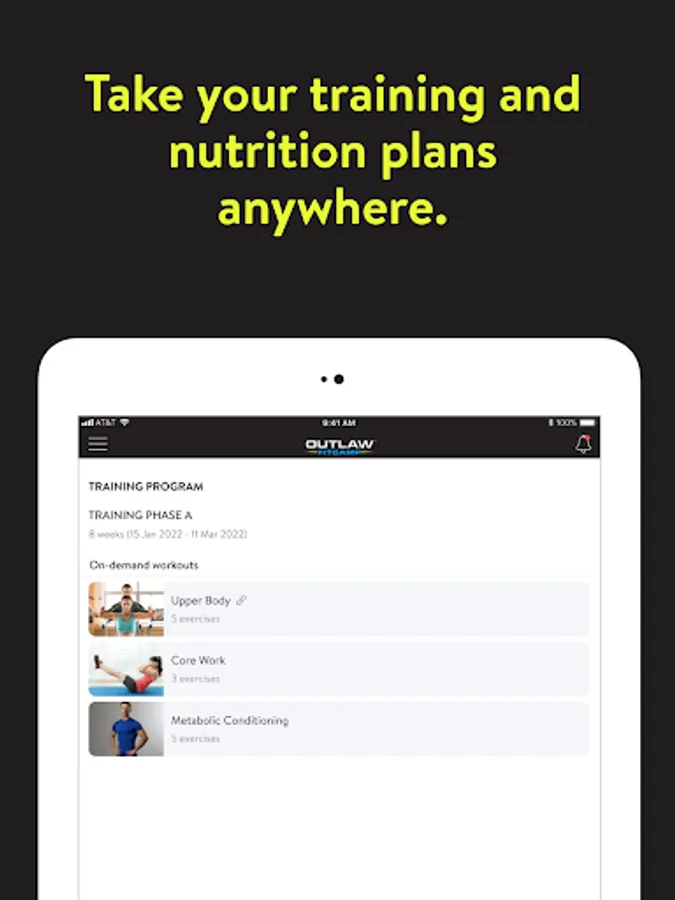 With the Outlaw FitCamp Performance App, you will have access to workout programs designed specifically to help you reach your fitness and health goals! You can follow & track your workouts, your nutrition, your lifestyle habits, measurements and results–all with the help of your coach.
