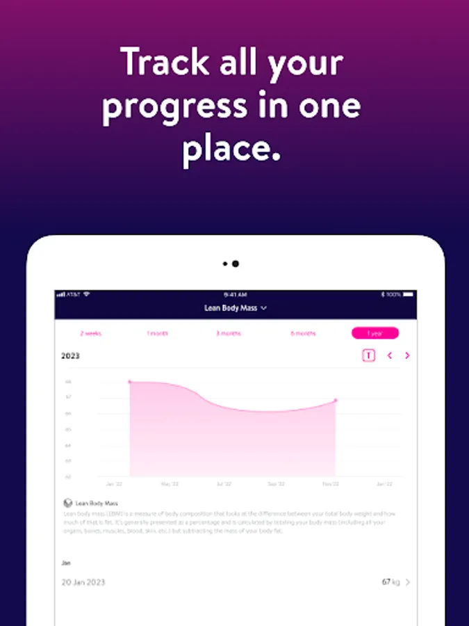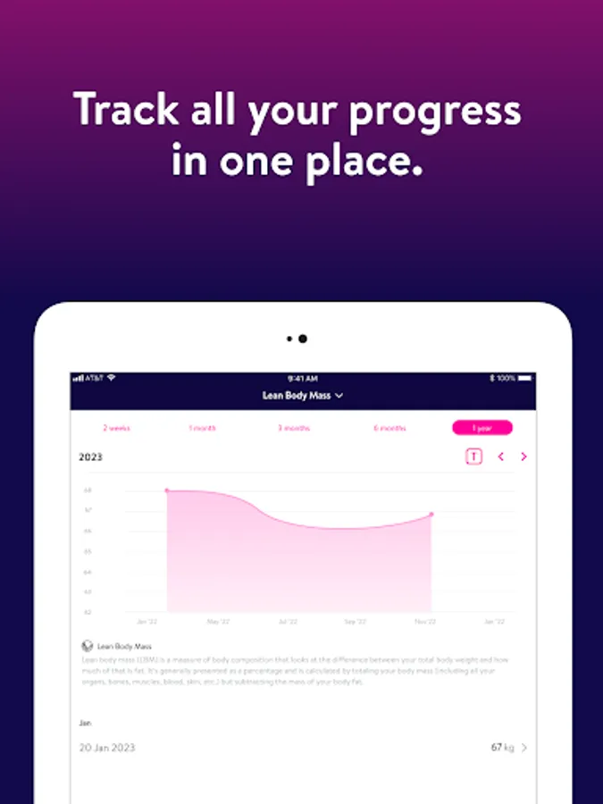 - Connect to other wearable devices and apps like the Apple Health App, Garmin, Fitbit, MyFitnessPal, and Withings devices to track workouts, sleep, nutrition, and body stats and composition