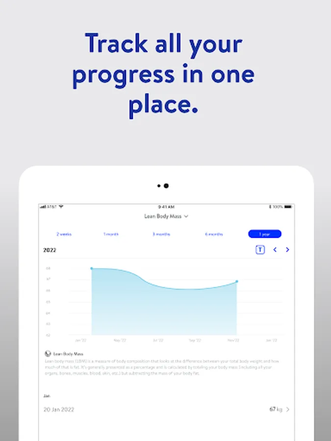 - Connect to other wearable devices and apps like the Apple Health App, Garmin, Fitbit, MyFitnessPal, and Withings devices to track workouts, sleep, nutrition, and body stats and composition